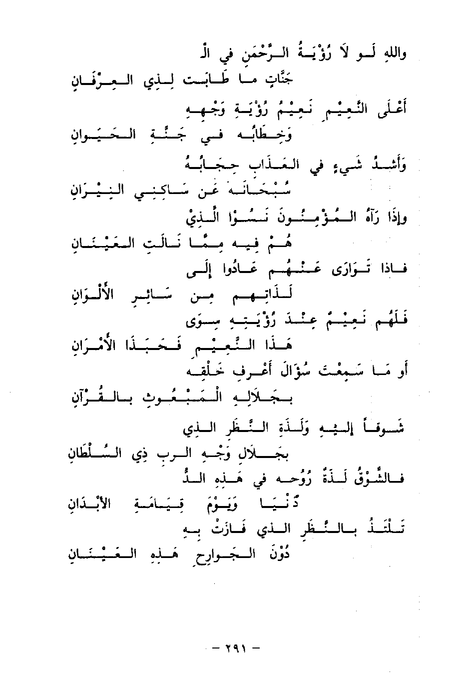 واللهِ لَولاَ رُؤْيَةُ الرَّحْمَنِ في الْـ ... جَنَّاتٍ ما طَابَتِ لِذِي العٍِرْفَانِ