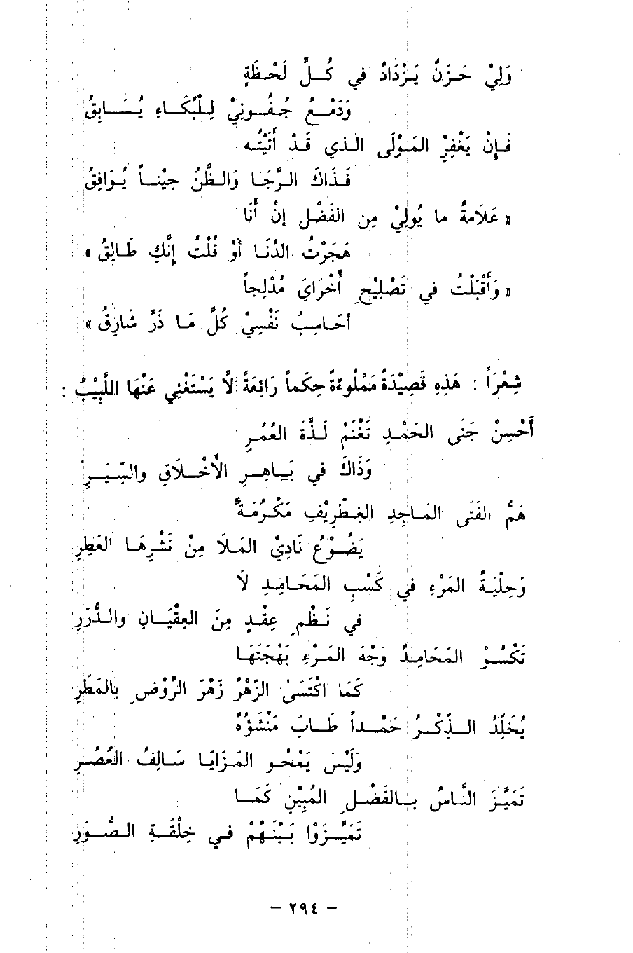 «وَأَقْبَلْتُ في تَصْلِيْحِ أَخْرَايَ مُدْلِجًا ... أحَاسِبُ نَفْسِيْ كُلَّ مَا ذَرَّ شَارِقُ»