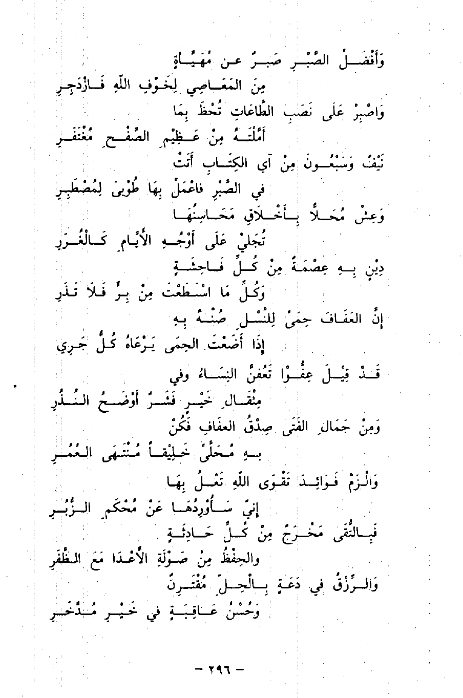 نَيْفٌ وَسَبْعُونَ مِنْ آي الكِتَابِ أَتَتْ ... في الصَّبْرِ فاعْمَلْ بِهَا طُوْبىَ لِمُصْطَبِرِ