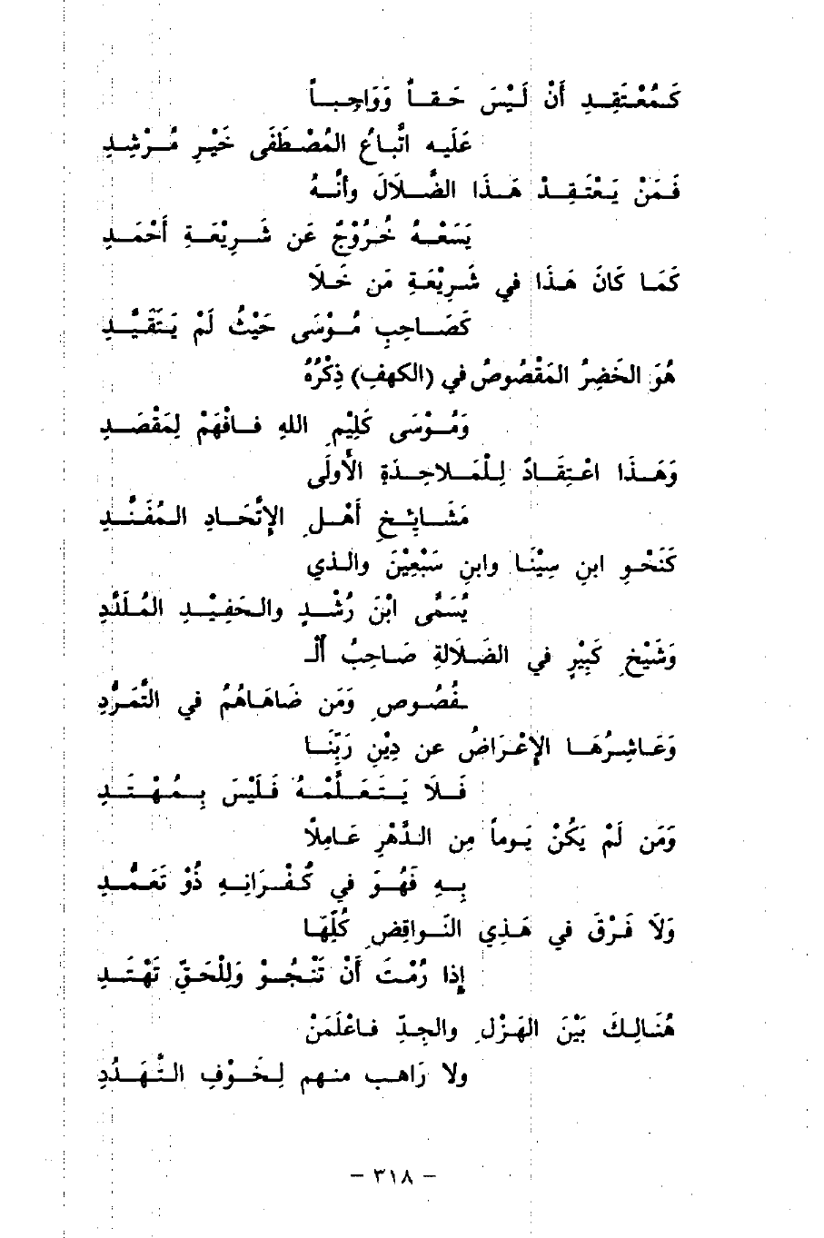 وَهَذَا اعْتِقَادٌ لِلْمَلاحِدَة الأولي ... مَشَايِخِ أَهْلِ الاتّحَادِ المُفَنَّدِ
