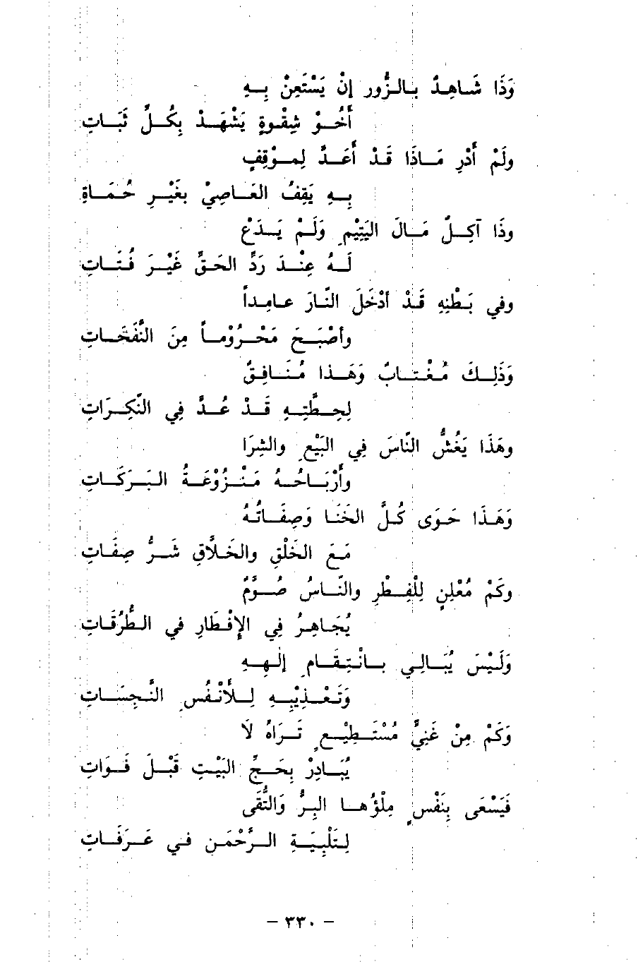 وَكَمْ مِنْ غَنِيٍّ مُسْتَطِيْعٍ تَرَاهُ لاَ ... يُبَادِر بِحَجِّ البَيْتِ قَبْلَ فَوَاتِ