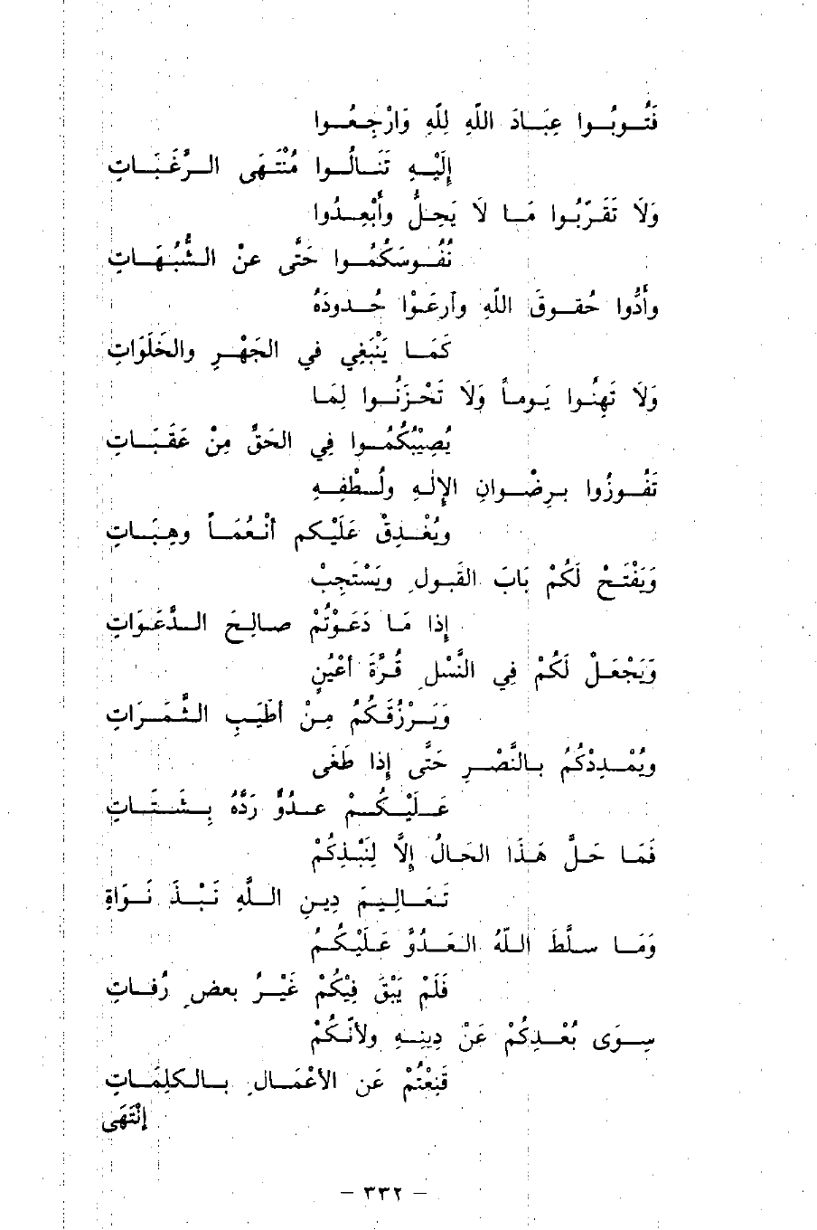 فَتُوبُوا عِبَادَ اللهِ للهِ وَارْجِعُوا ... إِلَيْهِ تَنَالُوا مُنْتَهَى الرَّغَبَاتِ