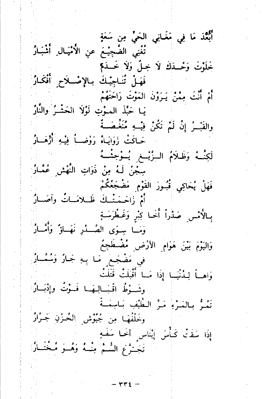 أَمْ أَنْتَ مِمَّنْ يَرَوْنَ المَوْتَ رَاحَتَهُمْ ... يَا حَبَّذَا الموْتِ لَوْلاَ الحَشْرُ والنَّارُ