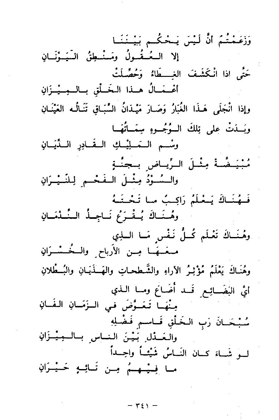 حَتَّى إذا انْكَشَفَ الغِطَاءُ وَحُصِّلَتْ ... أعْمَالُ هذا الخَلْقِ بالمِيْزَانِ