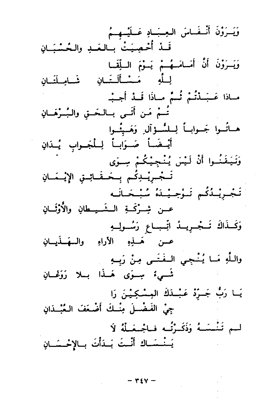 وَتَيَقَنُوا أَنْ لَيْسَ يُنْجِيْكُمْ سِوَى ... تَجْرِيْدِكُم بِحَقَائِقِ الإِيْمَانِ