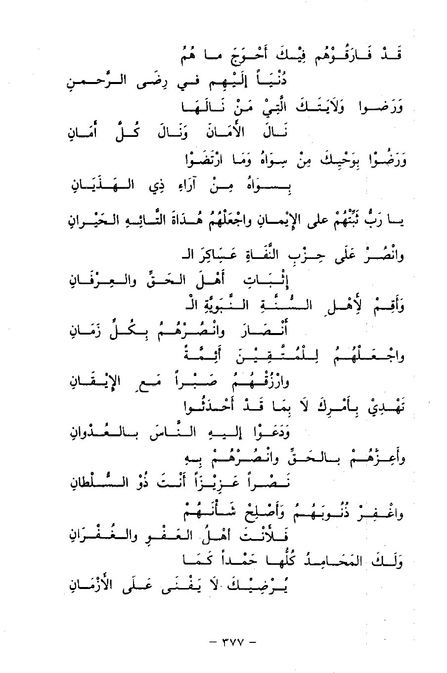وَأَقِمْ لأَهْلِ السُّنَّةِ النَّبَويَّةِ الْـ ... أَنْصَارَ وانْصُرْهُمُ بِكُلِّ زَمَانِ
