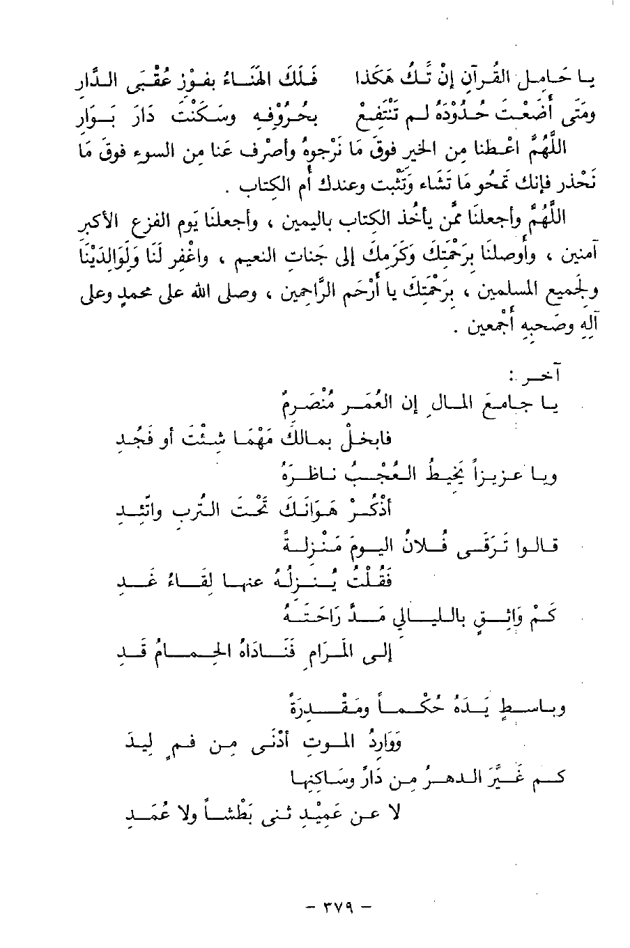 يا جامعَ المالِ إن العُمَر مُنْصَرِمٌ ... فابخلْ بمالكَ مَهْمَا شِئْتَ أو فَجُدِ