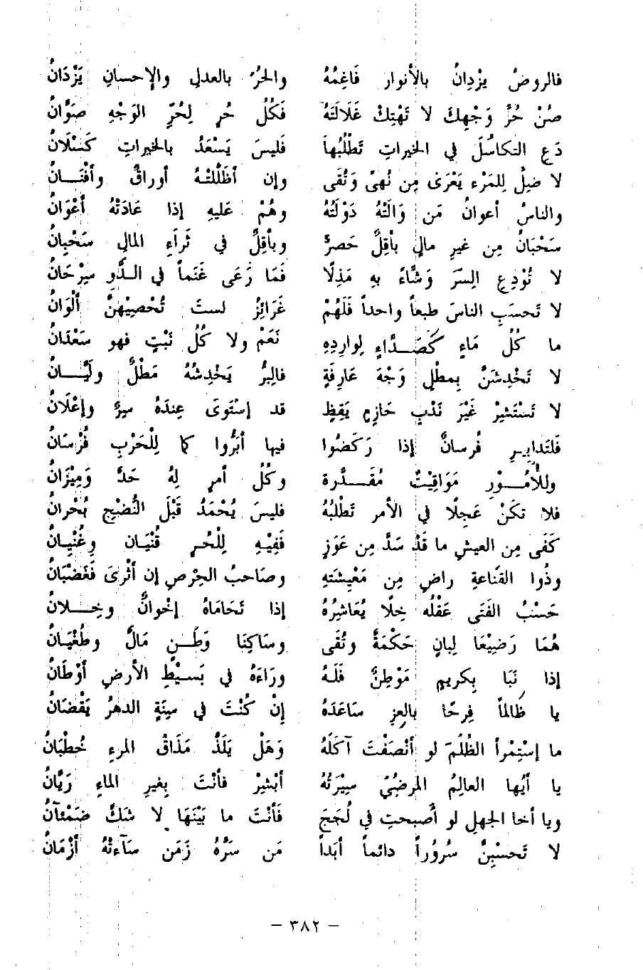 فالروضُ يزْدِانُ بالأنوار فَاغِمُهُ ... والحُر بالعدلِ والإِحسانِ يُزْدَانُ
