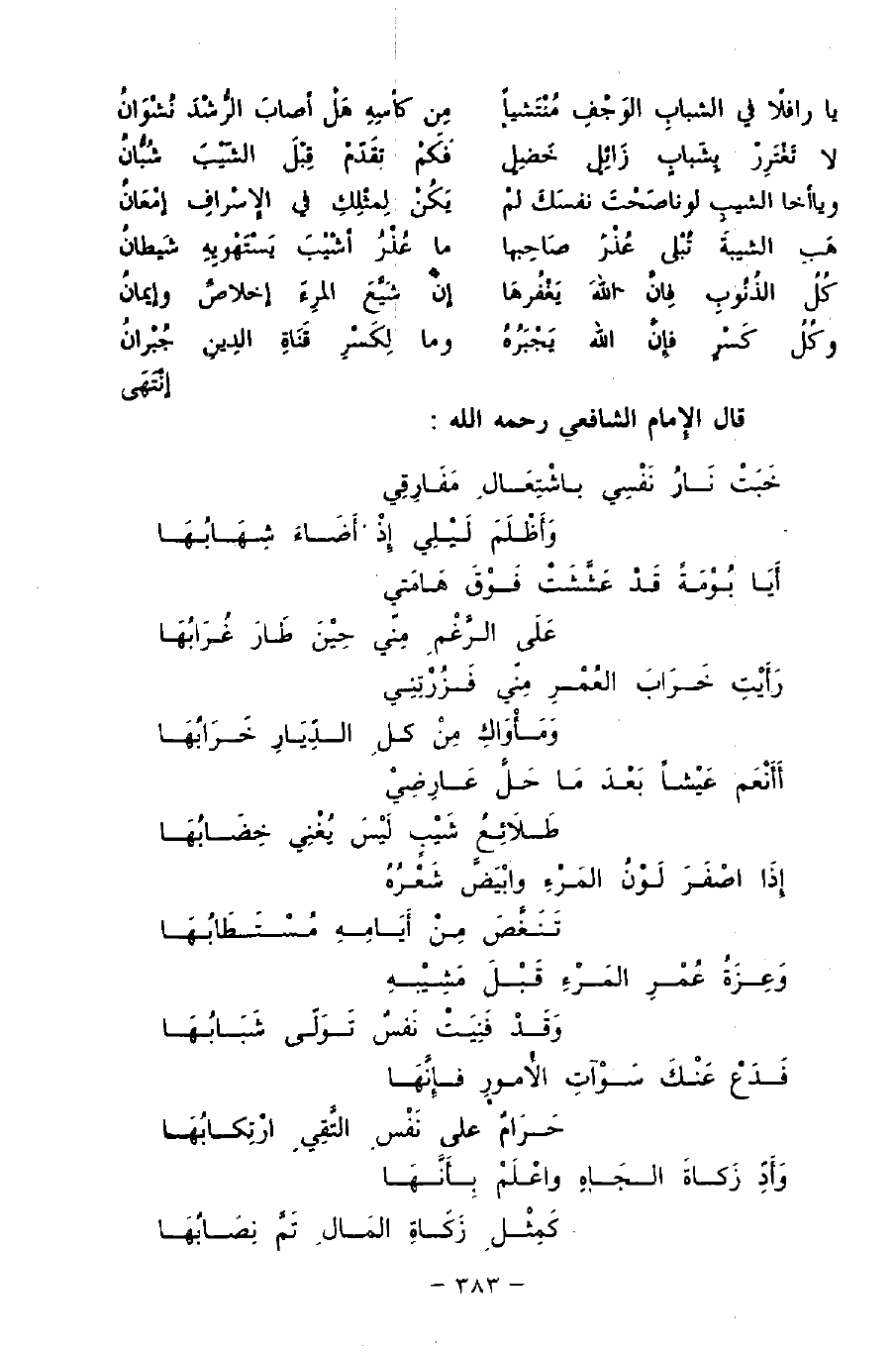 ويا أخا الشيبِ لو ناصَحْتَ نفسَكَ لمْ ... يَكُنْ لِمثْلِكِ في الإسْرافِ إمْعَانُ