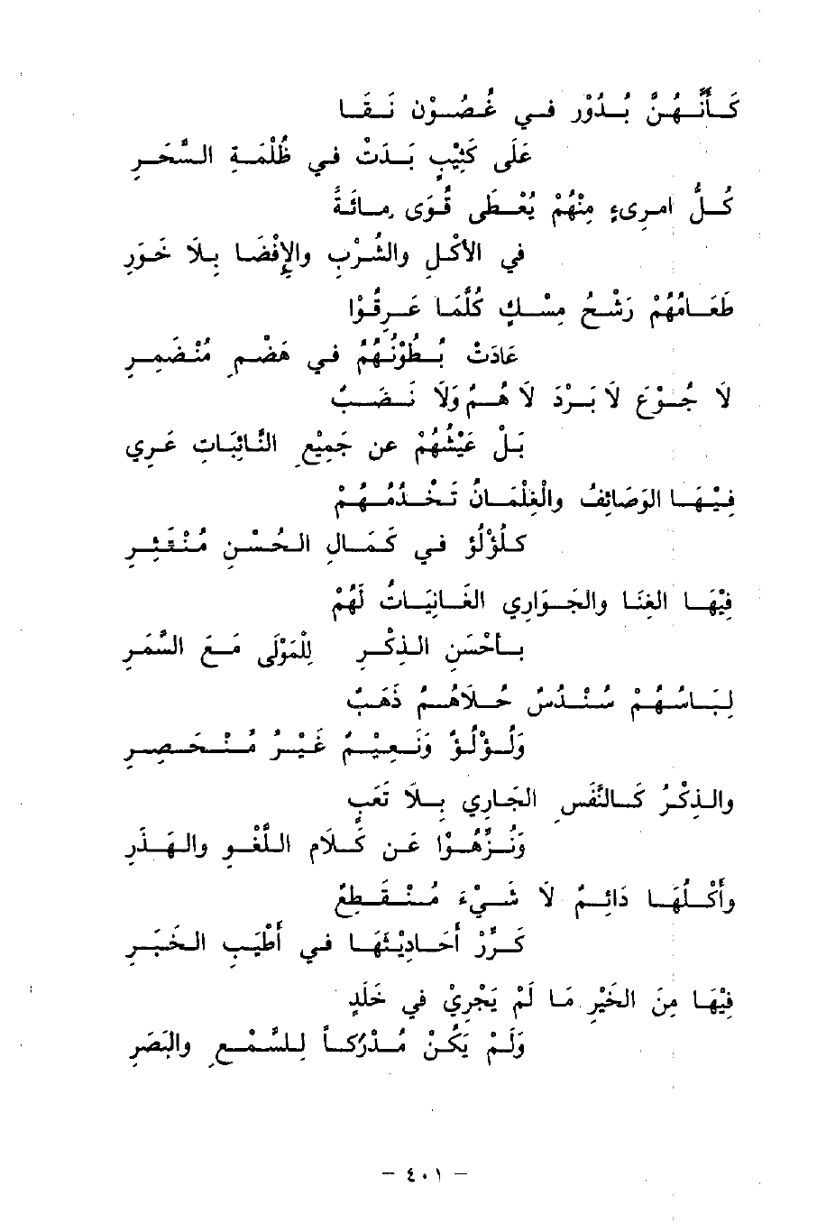 لِبَاسُهُمْ سُنْدُسٌ حُلاَهُمُ ذَهَبٌ ... وَلُؤْلُؤُ وَنَعِيْمٌ غَيْرُ مُنْحَصِرِ