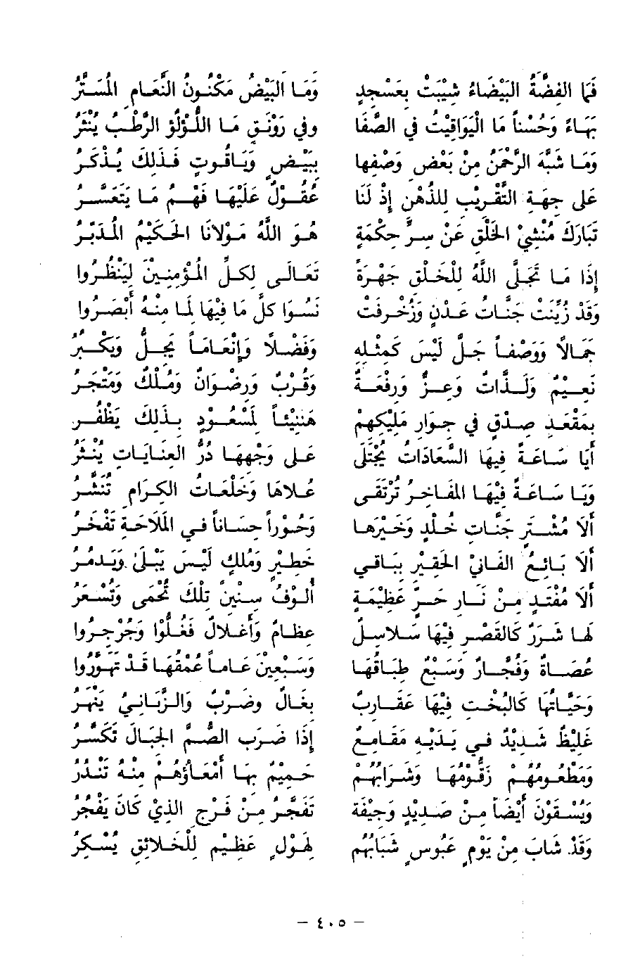 وَمَا شَبَّهَ الرَّحْمَنُ مِنْ بَعْضِ وَصْفِها ... بَبَيْضٍ وَيَاقُوتٍ فَذَلِكَ يُذْكَرُ