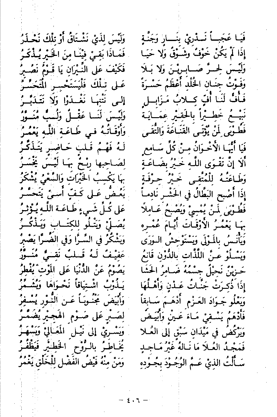 فَطُوْبَى لِمَنْ يُمْسِيْ وَيُصْبحُ عَامِلاً ... عَلى كُلِّ شَيءٍ طَاعَة اللهِ يُؤْثِرُ