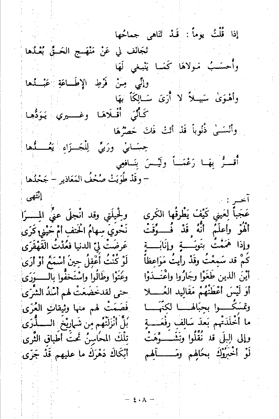 كَمْ قد سَمِعْتُ وقَدْ رأيتُ مَوَاعِظًا ... لَوْ كُنْتُ أَعْقِلُ حِينَ أسْمَعُ أوْ أرَى