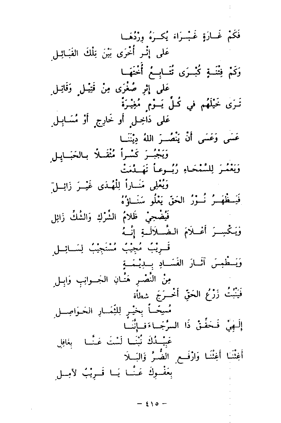 عَسَى وَعَسَى أَنْ يَنْصُرَ اللهُ دِيْنَنَا ... وَيَجْبُرَ كَسْرًا مًثْقَلاً بالحَبَايِلِ