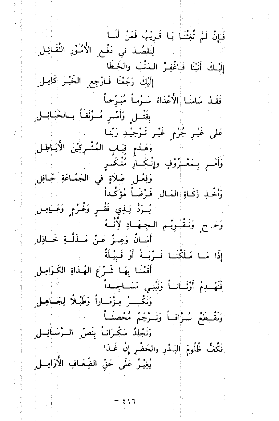 إِلَيْكَ أَنَبْنَا فَاغْفِرْ الذنْبَ والخَطَا ... إِلَيْكَ رَجَعْنَا فَارْجِع الخَيْرَ كَامِلِ