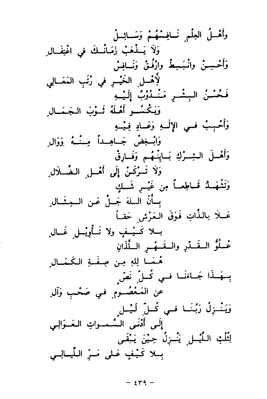 عُلُوُّ القَدْرِ والقَهْرِ اللَّذَانِ ... هُمَا للهِ مِن صِفَةِ الكَمَالِ
