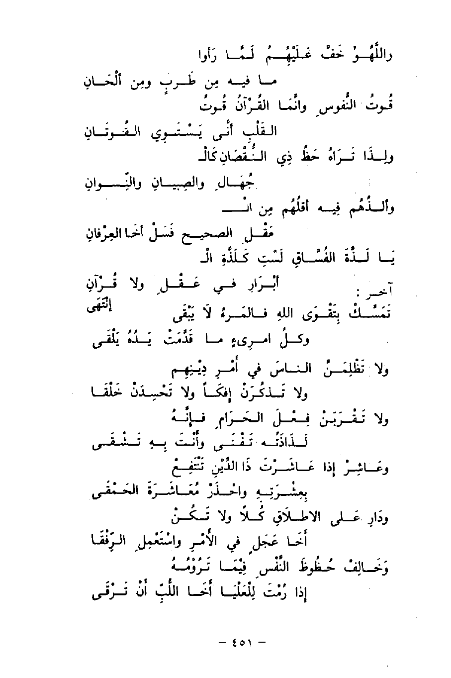 ولا تَظْلِمَنَّ الناسَ في أَمْرِ دِيْنِهِم ... ولا تَذكُرَنْ إِفكَاً ولا تَحْسِدَنْ خَلْقَا