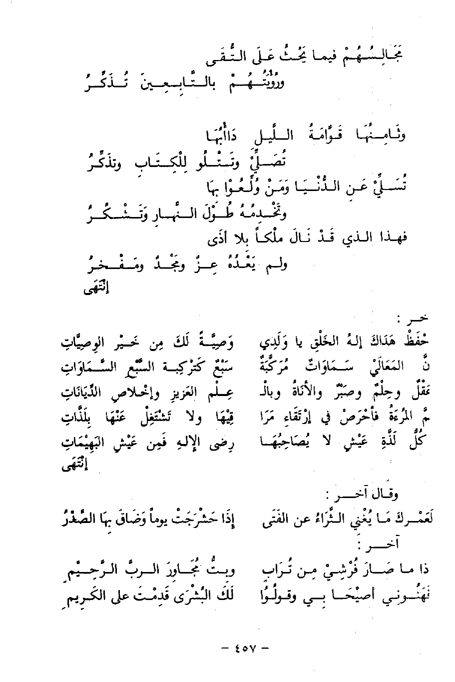 احْفَظْ هَدَاكَ إلهُ الخَلْقِ يا وَلَدِي ... وَصِيَّةً لَكَ مِن خَيْر الوِصِيَّاتِ