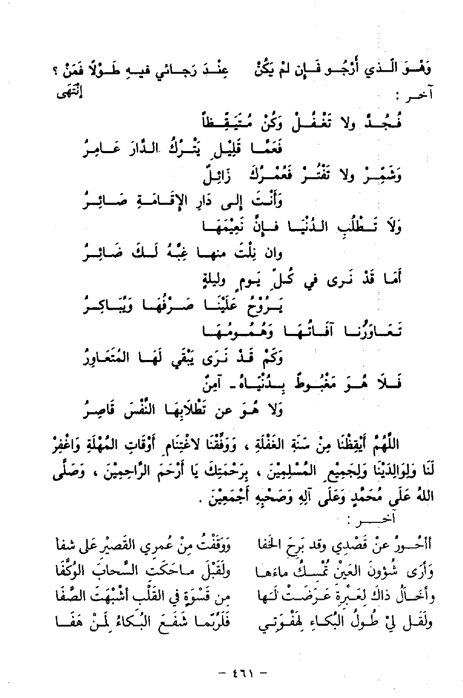 اللَّهُمَّ أَيْقِظْنَا مِنْ سَنَةِ الغَفْلَةِ، وَوَفَّقْنَا لاغْتِنَامِ أَوْقَاتِ المُهْلَةِ، وَاغْفِرْ لَنَا وَلِوَالِدَيْنَا وَلِجَمِيْعِ المُسْلِمِيْنَ، بِرَحْمَتِكَ يَا أَرْحَمَ الرَّاحِمِيْنَ، وَصَلَّى اللهُ عَلَى مُحَمَّدٍ وَعَلَى آلِهِ وَصَحْبِهِ أَجْمَعِيْنَ.