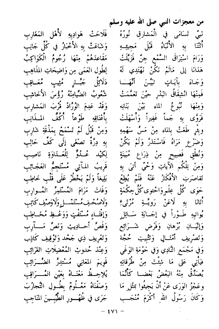 وَإتْيَانِ بُرْهانِ وَفَرْضِ شَرَائِع ... وَقَصِّ أحادِيثِ وَنَصِّ مَآرِبِ