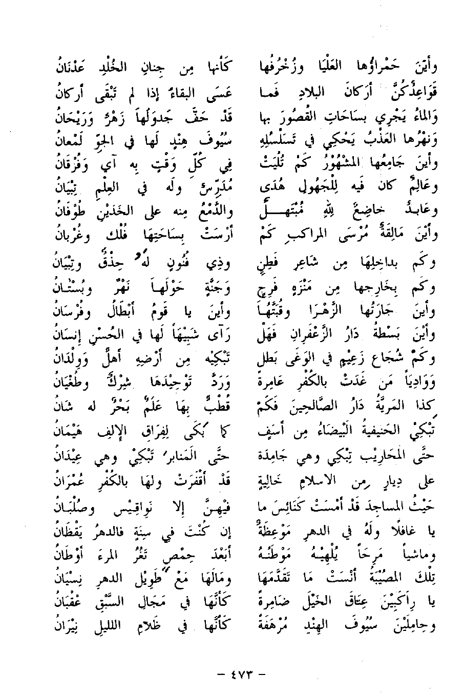 على دِيارٍ مِن الإسلامِ خَالِيةٍ ... قَدْ أقْفَرَتْ ولهَا بالكُفْرِ عُمْرَانُ