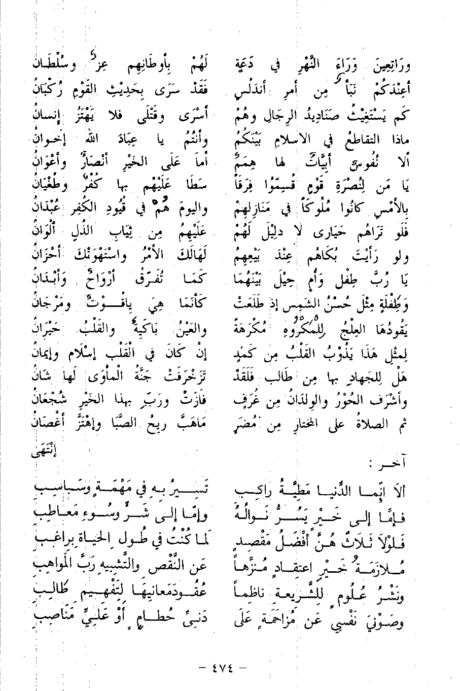 ونَشْرُ عُلُومٍ للشَّرِيعةِ ناظِمًا ... عُقُودَ مَعانِيهَا لِتَفْهيمِ طَالِبِ