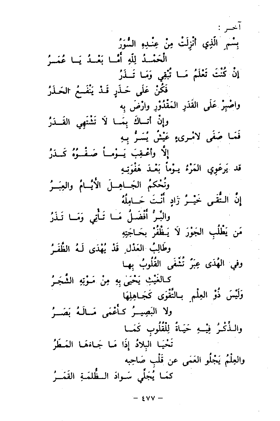 بِسْمِ الذِي أُنْزِلَتْ مِنْ عِنْدِهِ السُّوَرُ ... الحَمْدُ للهِ أَمَّا بَعْدُ يَا عُمَرُ