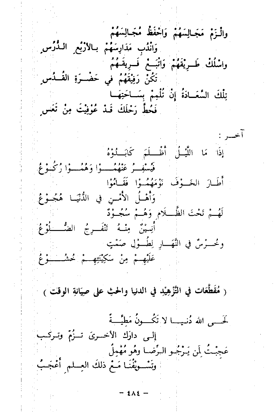 والْْزَمْ مَجَالِسَهُمْ وَاحْفَظْ مَجَالِسَهُم ... وَانْدُبْ مَدَارِسَهُم بِالأَرْبَعِ الدُّرُسِ