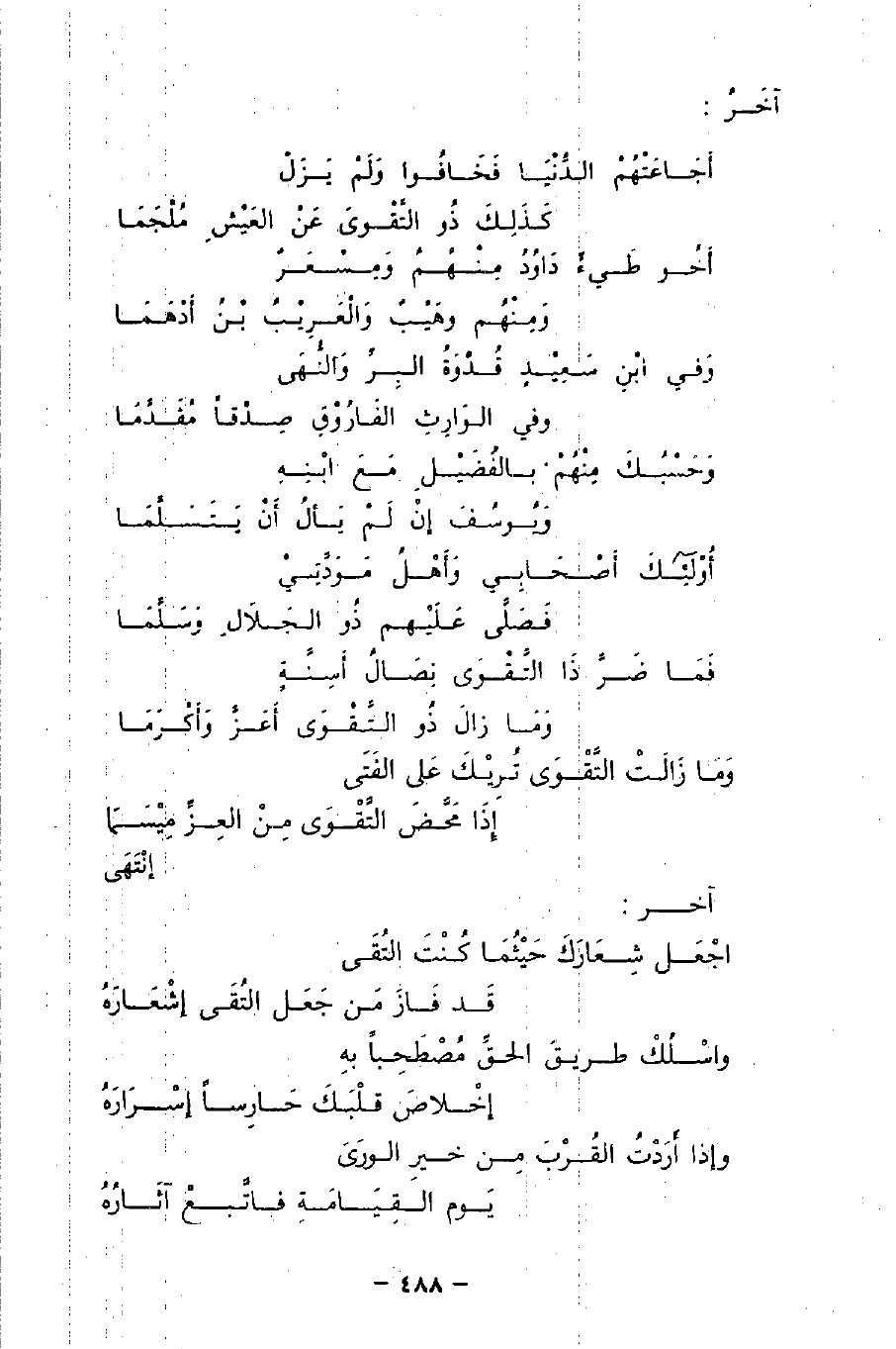 فَمَا ضَرَّ ذَا التَّقْوَى نِصَالُ أَسِنَّةٍ ... وَمَا زالَ ذُو التَّقْوَى أَعَزَّ وَأَكْرَمَا