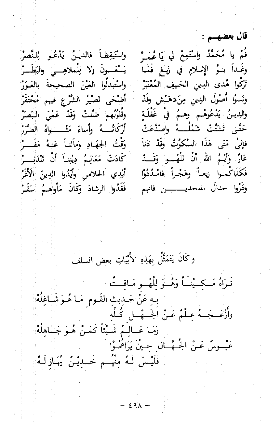 وكَانَ يَتَمَثَّلُ بِهَذِهِ الأَبْيَاتِ بعض السلف