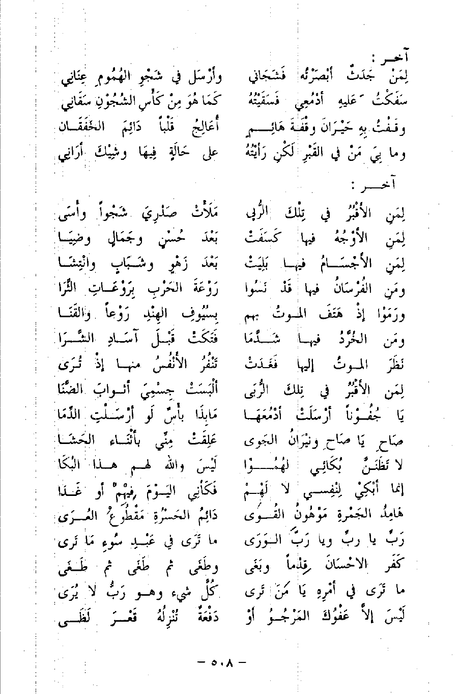 يَا جُفُونًا أَرْسَلَتْ أَدْمُعَهَا ... مَا بِذَا بَأْسٌ لَوْ أَرْسَلْتِ الدَّمَا