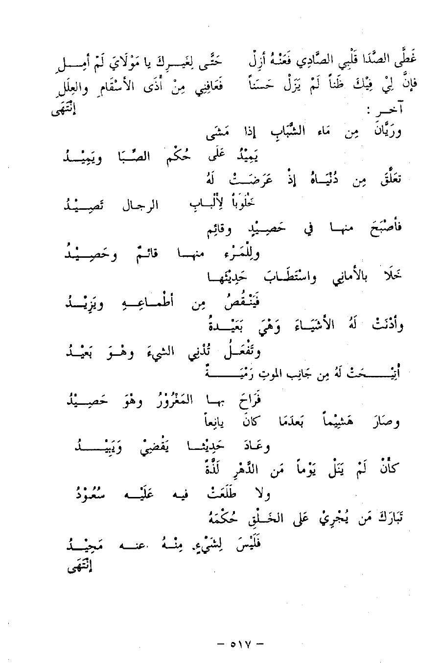 غَطَّى الصَّدَا قَلْبِي الصَّادِي فَعَنْهُ أزِلْ ... حَتَّى لِغَيرِكَ يا مَوْلاَيَ لَمْ أمِلِ