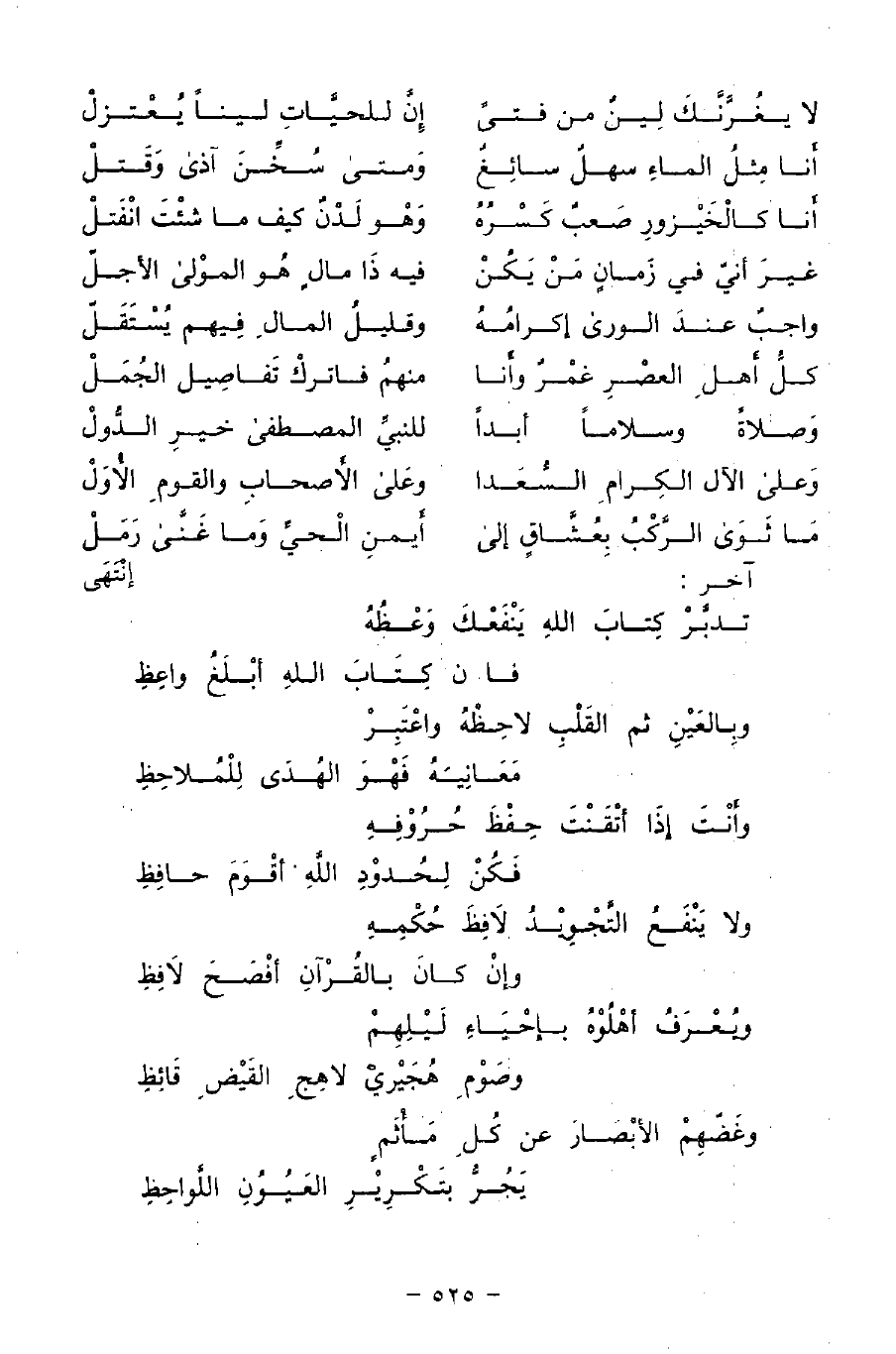 وبِالعَيْنِ ثم القَلْبِ لاحِظْهُ واعْتَبِرْ ... مَعَانِيَهُ فَهْوَ الهُدَى لِلْمُلاحِظِ