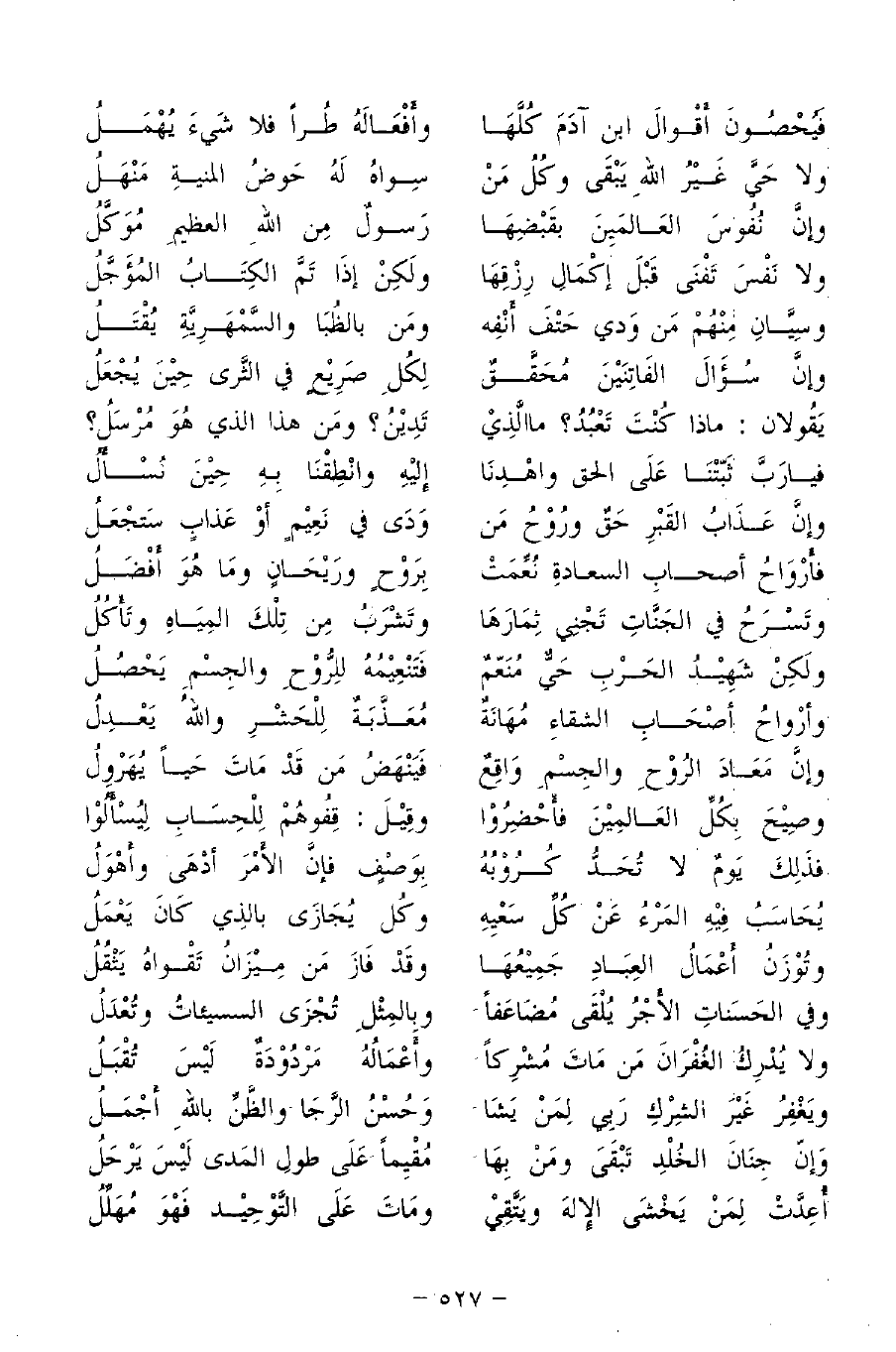 وإِنَّ عَذَابَ القَبْرِ حَقٌّ وَرُوحُ مَن ... وَدَى في نَعِيمٍ أَوْ عَذَابٍ سَتجْعَلُ