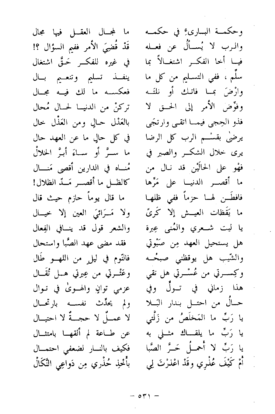 والرب لا يُسألُ عن فعله ... قَدْ قُضِيَ الأمر ففيم السؤال؟!