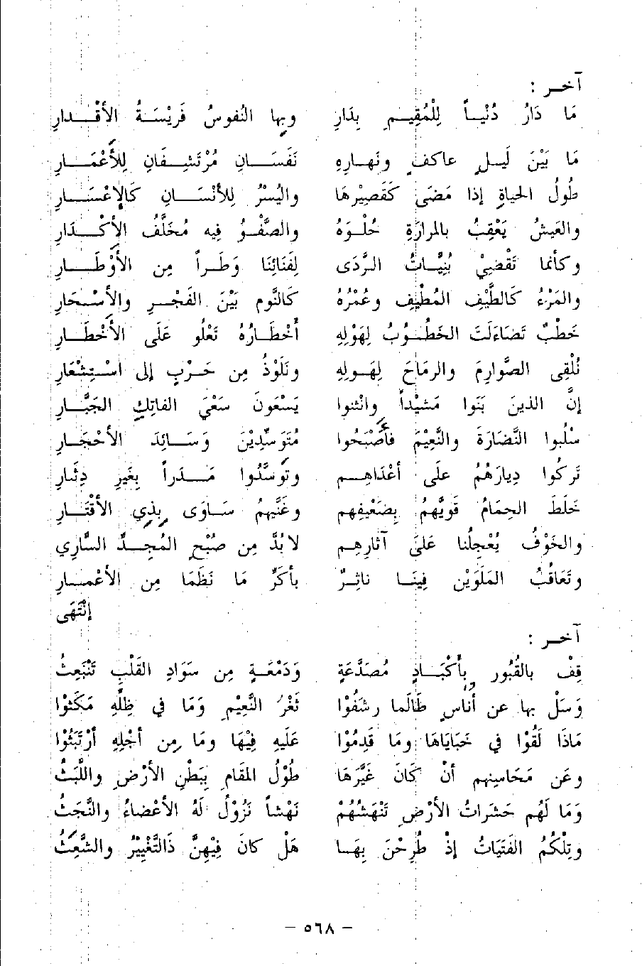 وتَعَاقُبِ المَلَوَيْن فِينَا ناثِرٌ ... بأكَرِّ مَا نَظَمَا مِن الأَعْمارِ