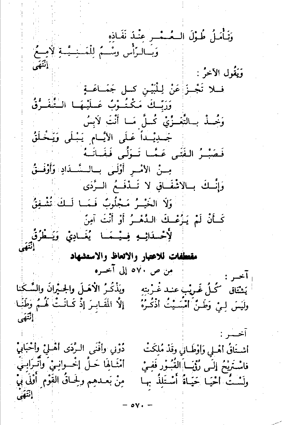 ولَيَسَ لِي وَطَنٌ أمْسَيْتُ أذْكُرُهُ ... إلاَّ المَقَابِرَ إذْ كَانَتْ لَهُمُ وَطَنَا