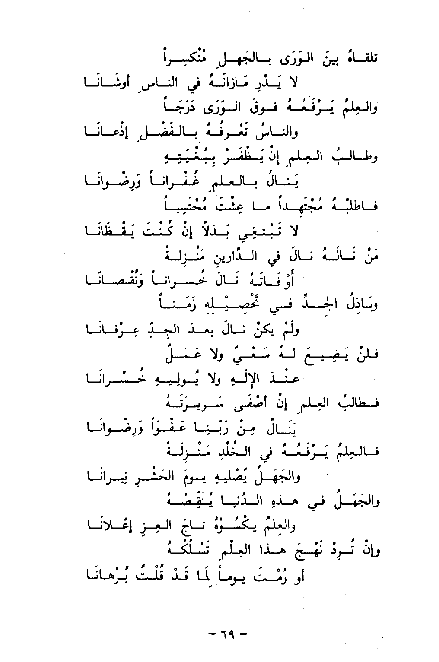 وطالبُ العِلمِ إِنْ يَظْفَر بِبُغْيَتِهِ ... يَنل بالعلمِ غُفْرانًا وَرِضْوانَا