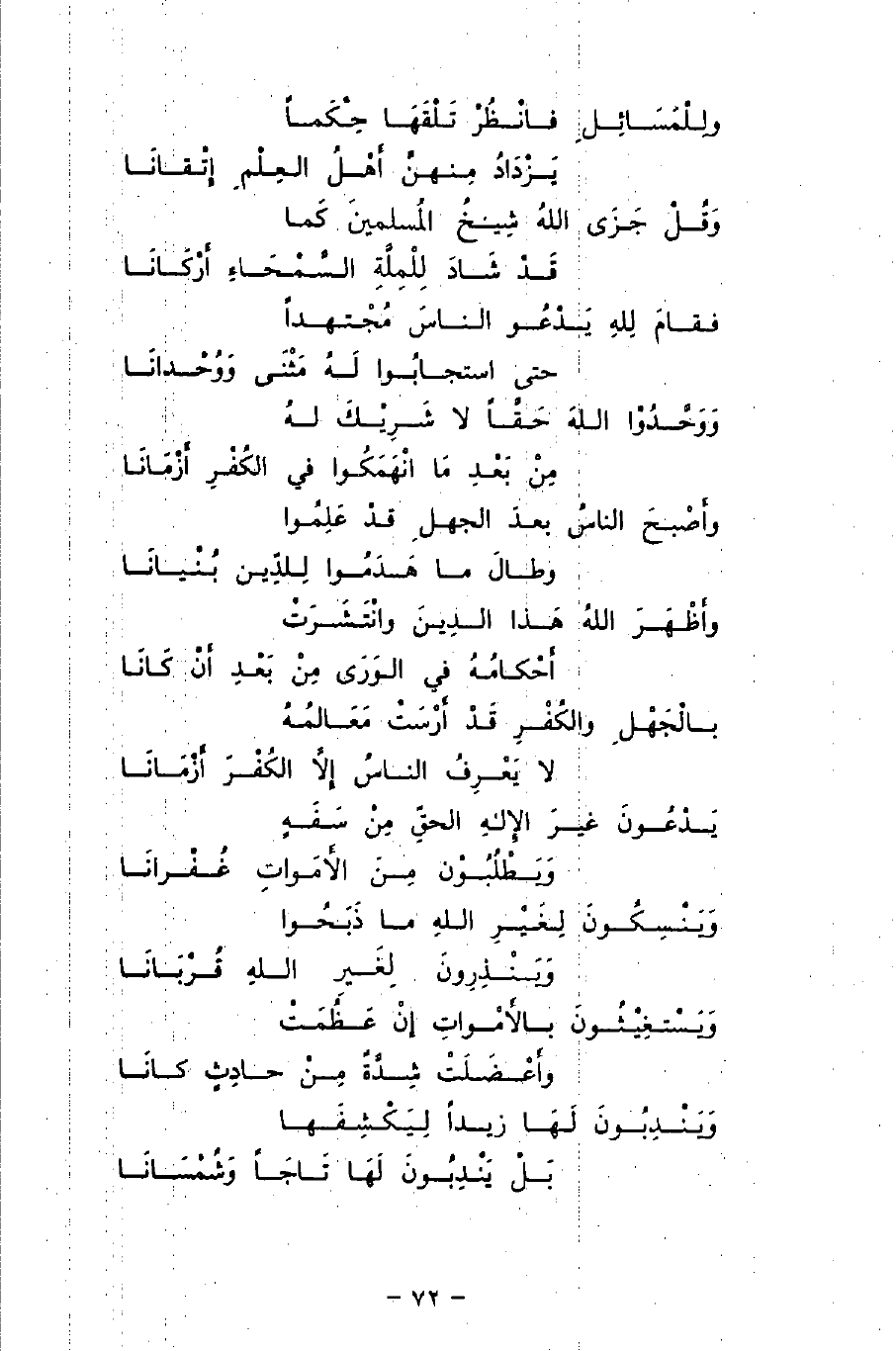 وَوَحَّدُوْا اللهَ حَقًّا لا شَرِيْكَ لهُ ... مِنْ بَعْدِ مَا انْهَمَكُوا في الكُفْرِ أَزْمَانَا