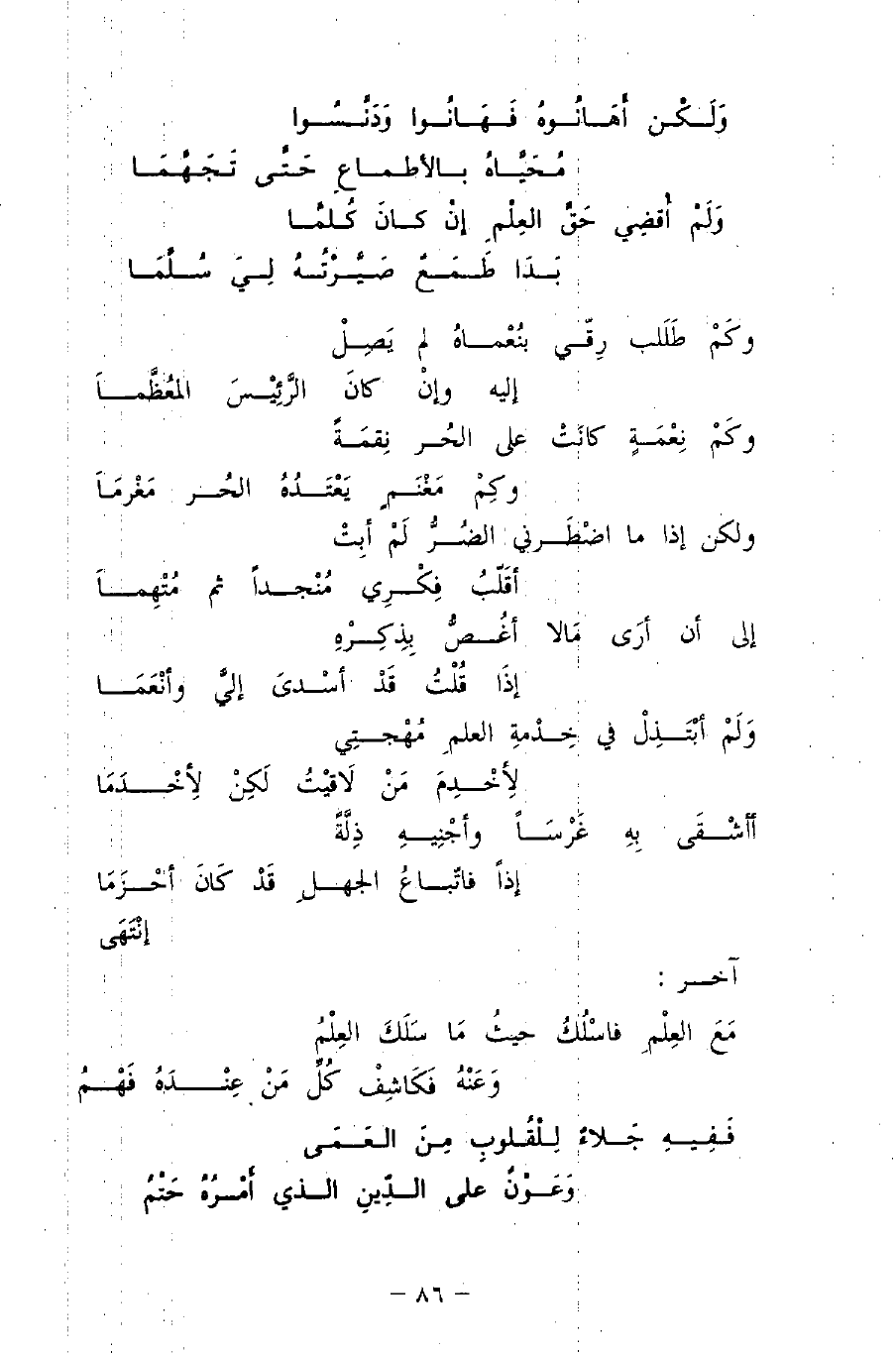 مَعَ العِلْمِ فاسْلُكُ حيثُ مَا سَلَك العِلْمُ ... وَعَنْهُ فَكَاشِفْ كُلَّ مَنْ عِنْدَهُ فَهْمُ