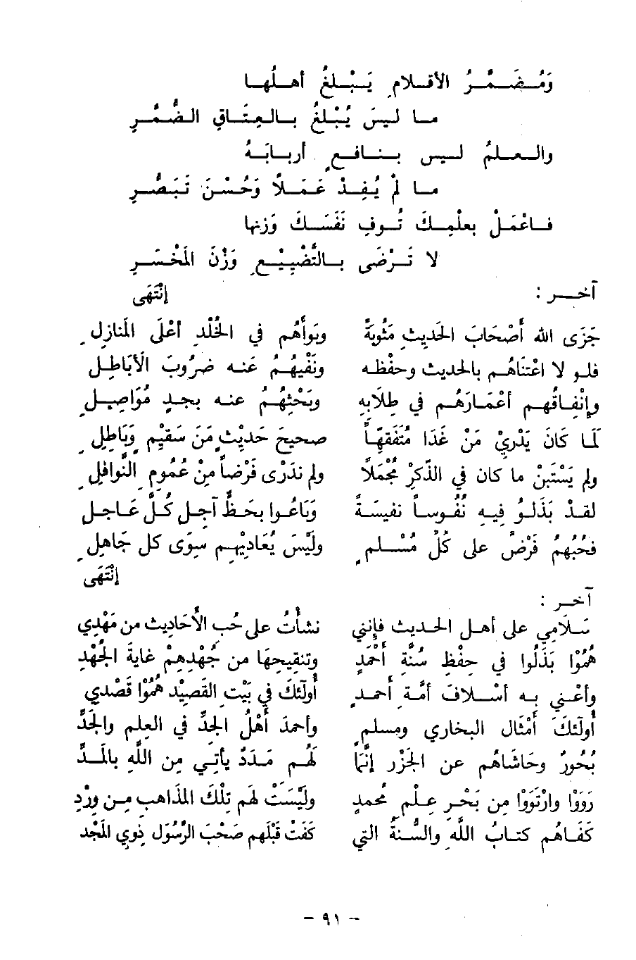سَلاَمِي على أهل الحديث فإِنني ... نشأْتُ على حُب الأَحَادِيث من مَهْدِي