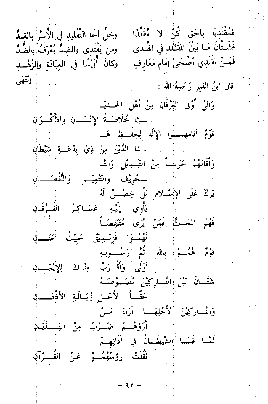 فَوْمٌ أقامهمو الإِلَهُ لِحِفْظِ هَـ ... ـذا الدِّيْنِ مِنْ ذِيْ بِدْعَةٍ شَيْطَانِ