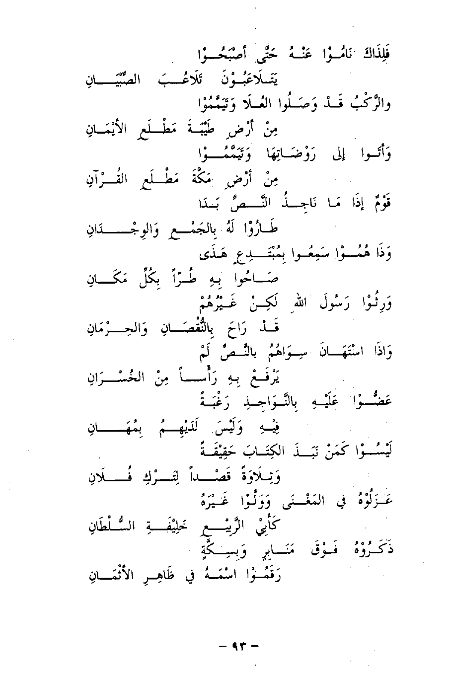 لَيْسُوْا كَمَنْ نَبَذَ الكِتَابَ حَقِيْقَةً ... وَتِلاَوْةً قَصْدًا لِتَرْكِ فُلاَنِ