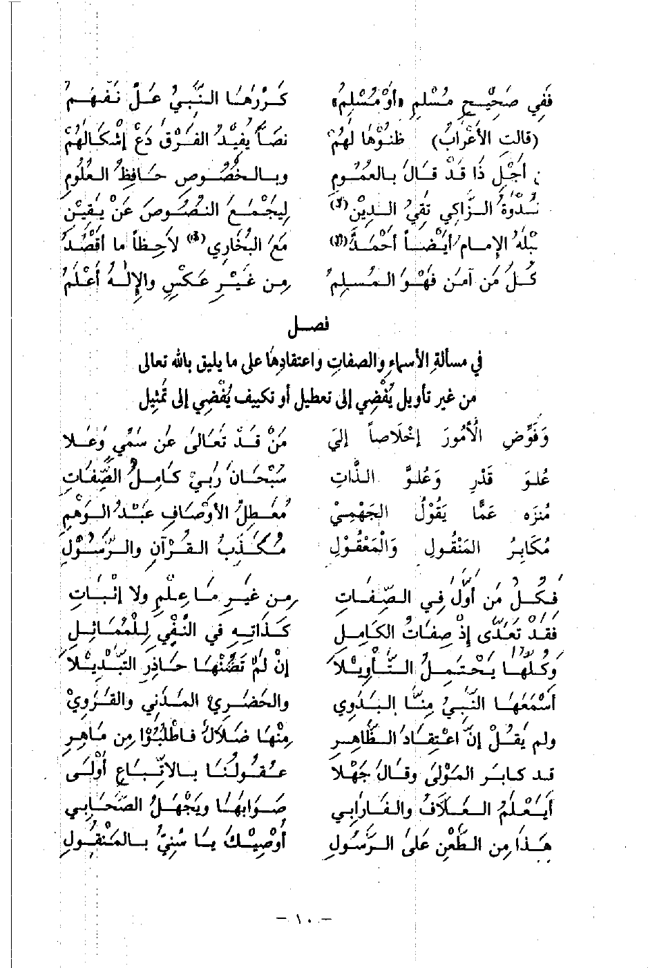 فَكُلُّ مَن أَوَّلَ فِي الصِّفَاتِ ... مِن غَيرِ مَا عِلْمٍ ولا إثْبَاتِ