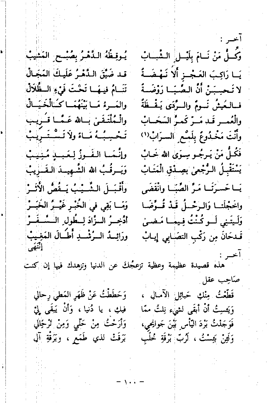 هذه قصيدة عظيمة وعظية تزعجُكَ عن الدنيا وتزهدك فيها إن كنت صَاحِب عقل