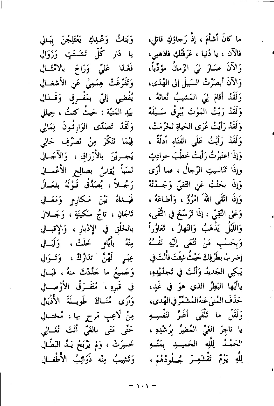 وَالآنَ أَبصَرْتُ السَبيلَ إِلى الهُدَى، ... وَتَفَرَّغَتْ هِمَمِيْ عَنْ الأَشْغَالِ