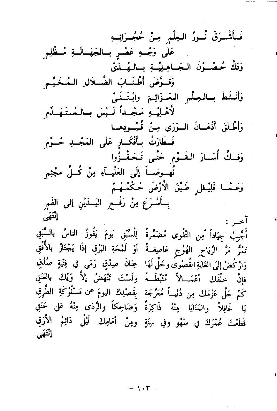 فَأَشْرَقَ نُورُ العِلْمِ مِنْ حُجَرَاتِهِ ... عَلَى وَجْهِ عَصْرٍ بالجَهَالَةِ مُظْلِمِ