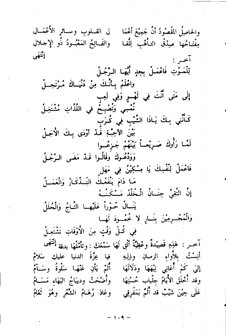 آخر: هَذِهِ قَصِيْدةٌ وعْظِيَّةٌ أَلْقِ لَهَا سَمْعَكَ، وتأمّلْهَا بدقَّة