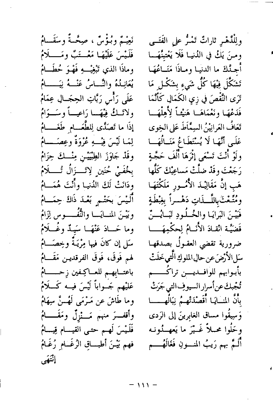 فَبَيْنَ البَرَايَا وَالخُلُودِ تَبَايُنٌ ... وبَيْنَ الْمَنَايَا وَالنُّفُوس لِزَامُ