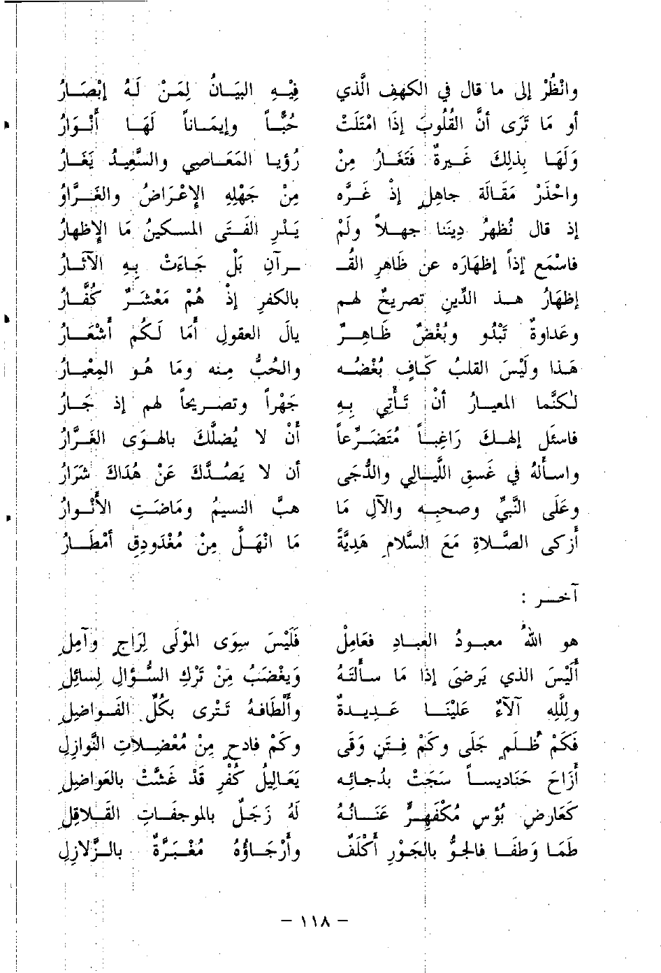 واسأَلهُ في غَسقِ اللَّيالِي والدُّجَى ... أَنْ لا يَصُدَّكَ عَنْ هُدَاكَ شَرَارُ